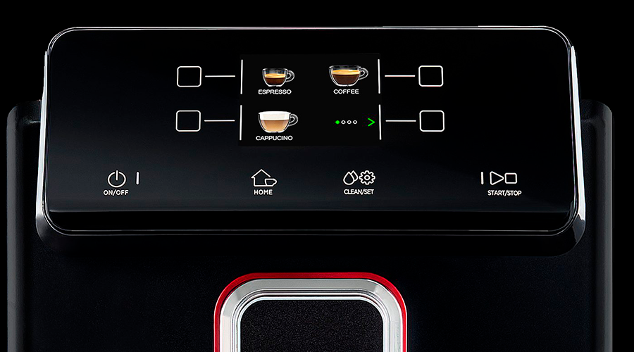 Maskinen är otroligt enkel att använda, tack vare den innovativa och användarvänliga TFT-displayen, som guidar dig genom förloppet, oavsett om du ska brygga kaffe, steama mjölk eller rengöra och underhålla maskinen. Under displayen hittar du 4 stora knappar till av/på, hem, inställningar samt start/stopp.
