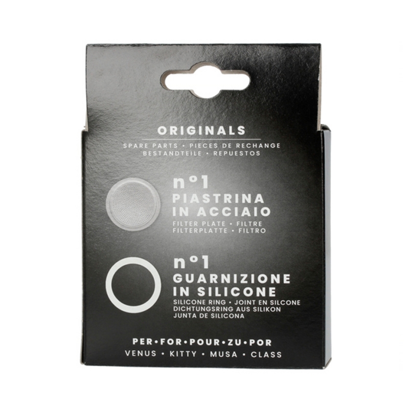 Packningarna i din Bialetti espressokanna kan bli slitna med tiden. Därför är ett detta paket med 1 nya packning samt extra filter alltid ett bra supplement till din espressokanna.