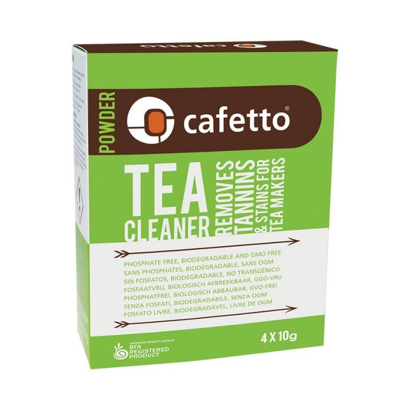 Cafetto Te Rengöring är en rengörings-produkt som tar bort tanniner "svarta teränder" och te-fläckar på porslin, keramik och glas.