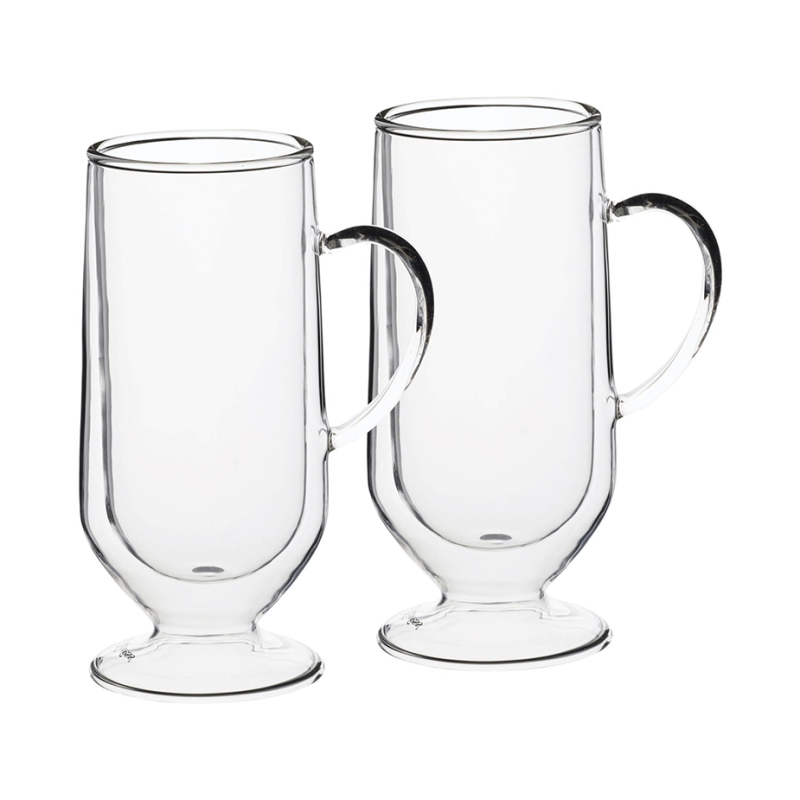 Eleganta dubbelväggiga Irish Coffee-glas från La Cafetière, som serverar en vacker Irish Coffee och håller den varm medan den avnjuts. Detta är stilfulla och karaktärsfulla glas som passar perfekt när du har gäster eller vid andra speciella tillfällen.