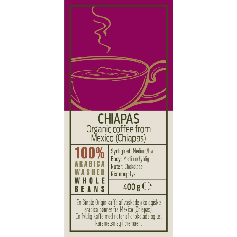 Kaffet består av tvättade arabicabönor från Chiapas-regionen i Mexico. Detta kaffe har, för ett espressokaffe, en ganska lätt rostning, vilket innebär att alla de fina undertonerna i detta kaffe bevaras.