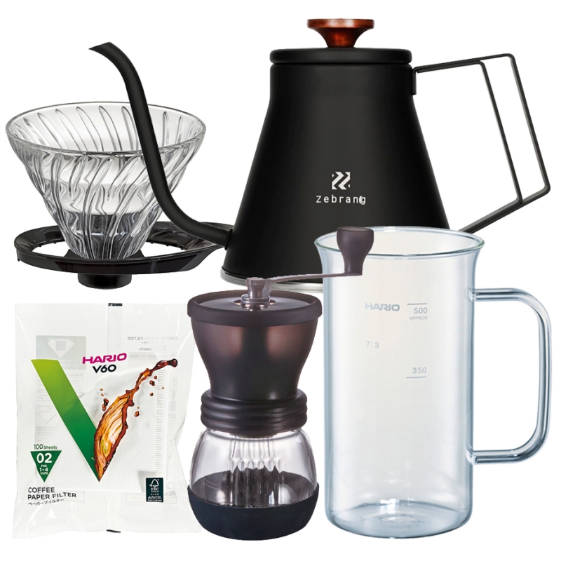Tillbehör passar Hario Filterbryggningsset Inkl. Gooseneck Vattenkokare, Dripper 2 Kopp, Server, Kvarn & Filter