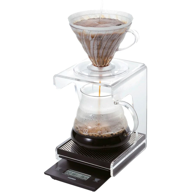 När stationen används med Harios Drip Scale och V60 Cup Dripper, kan du snabbt väga både ditt kaffe och vatten.
