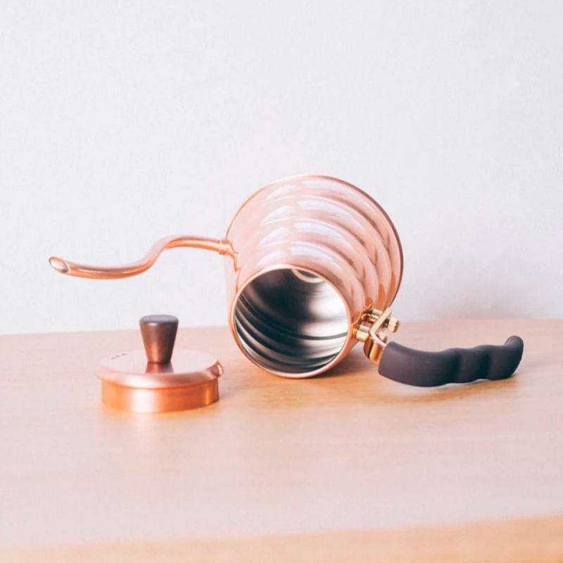 Hario V60 Buono-vattenkokaren i koppar har ett fin design och passar perfekt när du ska brygga en pour-kaffe, som med V60.