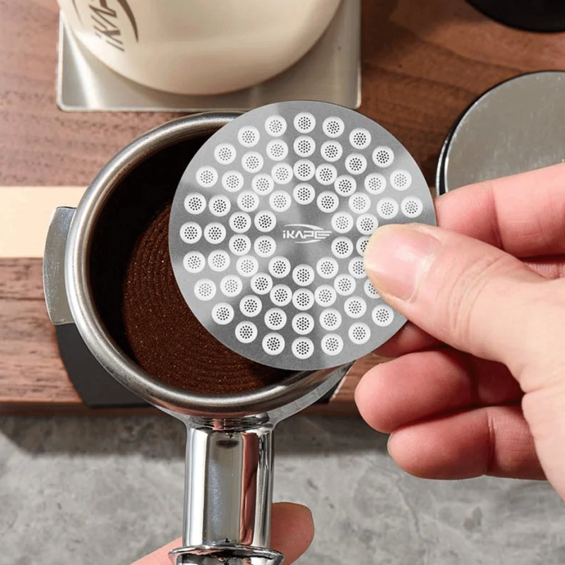 IKAPE V2 Ultra Tunn Filterskärm i rostfritt stål har en diameter på 58 mm och en tjocklek på endast 0,8 mm. Det är en högkvalitativ filterskärm, designad för att förbättra din espressobryggning genom att säkerställa en jämn och stabil extraktion.