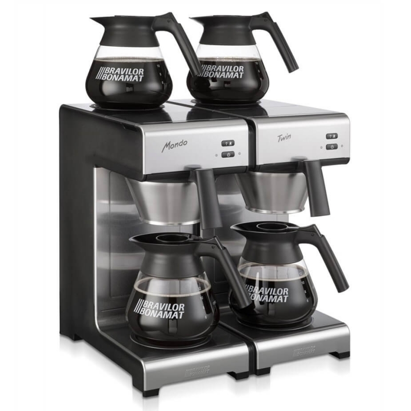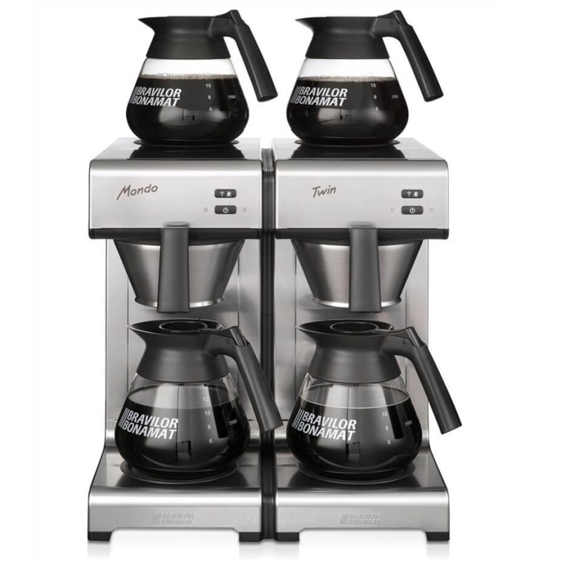 Bonamat Mondo Twin är en snabb, effektiv och lättanvänd filterkaffemaskin med 2 bryggstationer. På bara 5 minuter brygger maskinen 2 kannor kaffe svarande till 24 koppar.