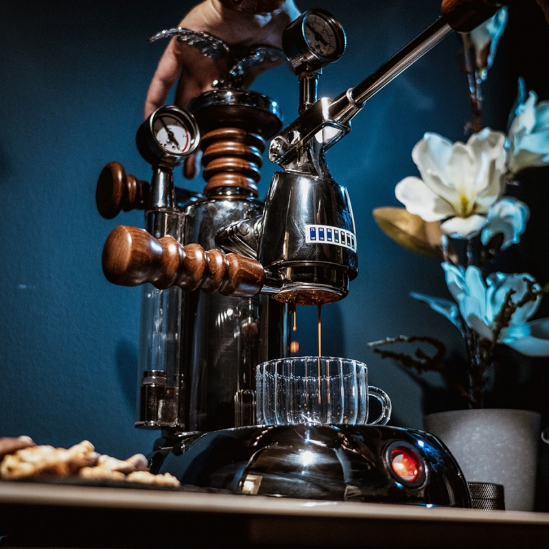 La Pavoni Lever espressomaskiner gör det möjligt att bättre utnyttja det malda kaffet tack vare dess bryggmetod, det hydrauliska förinfusionssystemet. Med denna bryggmetod får man det krämiga lagret i kaffet, vilket är espressoens sanna hemlighet.