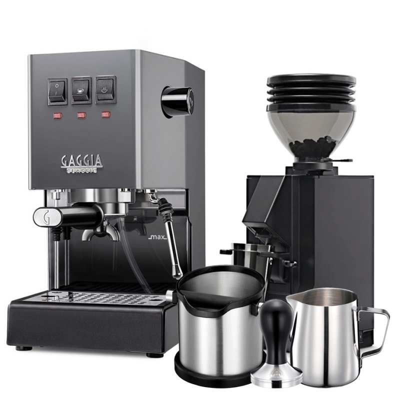 Gaggia Classic E24 Grå Espressomaskin Inkl. Eureka Mignon Zero 55s & Baristautrustning