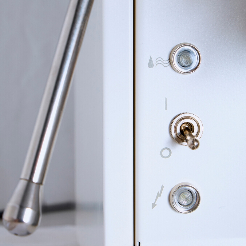 New Cellini Evolution har ett otroligt elegant och vackert designat yttre. Maskinen är tillverkad i pulverlackerat rostfritt stål med fina detaljer och ett elegant joystick-system med trädetaljer. Systemet kan aktiveras genom att vrida på joysticken i vilken riktning som helst.