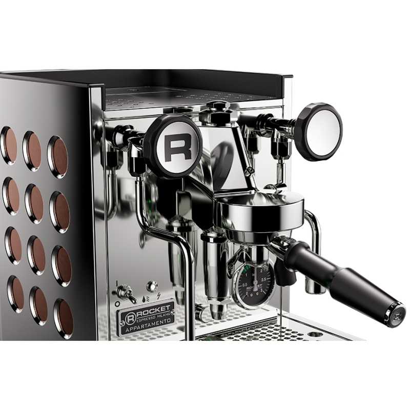 Rocket är känd för sitt hantverk, och Appartamento TCA är inget undantag. Maskinen är utrustad med en bred droppbricka, en sensor för vattenreservoaren och en 1,9 L vattentank. Dessutom ingår ett professionellt portafilter i rostfritt stål.