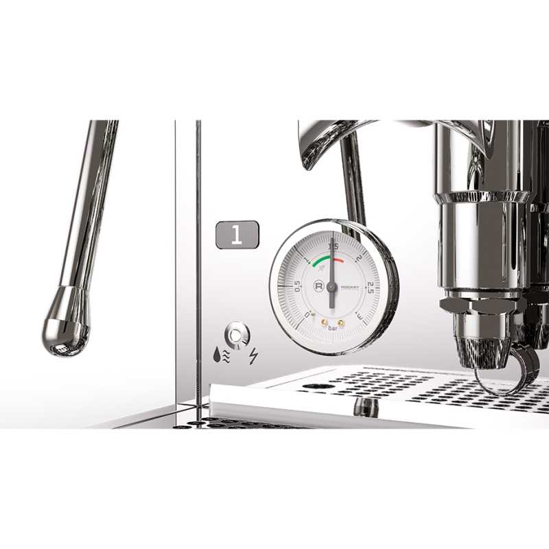 Maskinen är utrustad med två manometrar som visar om brygghuvudet och steamern är redo att användas. Dessutom har den en liten OLED-display med shottimer, så att du enkelt kan kontrollera espressoshottens löptid. Displayen informerar även om kedeltemperatur och enhetstemperatur.