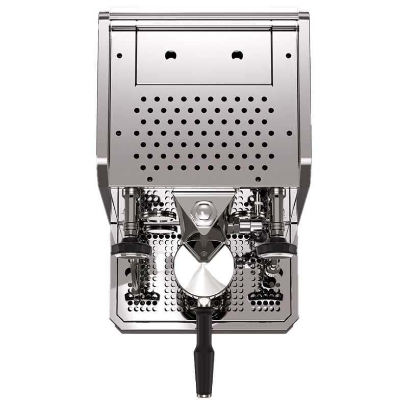 Maskinen är utrustad med två manometrar. Den ena visar när kedeln är varm och den andra visar pumptrycket. Dessutom är den utrustad med en liten OLED-display med shottimer, så du enkelt kan kontrollera espressoshottens löptid. Displayen informerar också om kedeltemperaturen. Dessutom har droppbrickan förstorats med 2 cm, så att du får mer utrymme att arbeta med maskinen och rengöra efter användning.