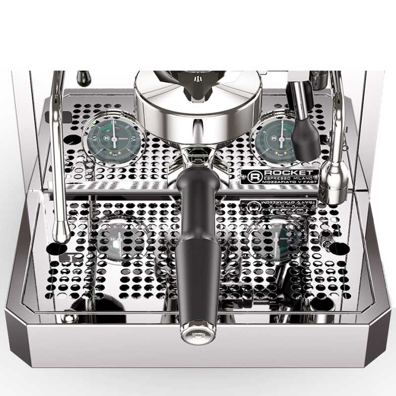 Rocket Espresso är känt för sina handbyggda espressomaskiner och Mozzafiato Fast V är inget undantag. Maskinen har en klassisk italiensk design med en svart pulverlackerad frontpanel och en polerad rostfri stålkonstruktion som både är stilren och slitstark. Mozzafiatos ikoniska design är inspirerad av retro-bilar med "takräcken", som bland annat kan ses på Volvo 760. De precisa hantverksdetaljerna och den intuitiva användningen gör det enkelt att brygga espresso på professionell nivå.