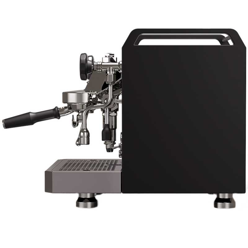 Maskinen är utrustad med två manometrar. Den ena visar när kedeln är varm och den andra visar pumptrycket. Den har dessutom en liten OLED-skärm med shottimer, så att du enkelt kan kontrollera espressoshottens bryggtid. Skärmen informerar också om kedeltemperaturen. Dessutom är droppbrickan utökad med 2 cm, så att du har mer utrymme att arbeta med maskinen och rengöra efter användning.