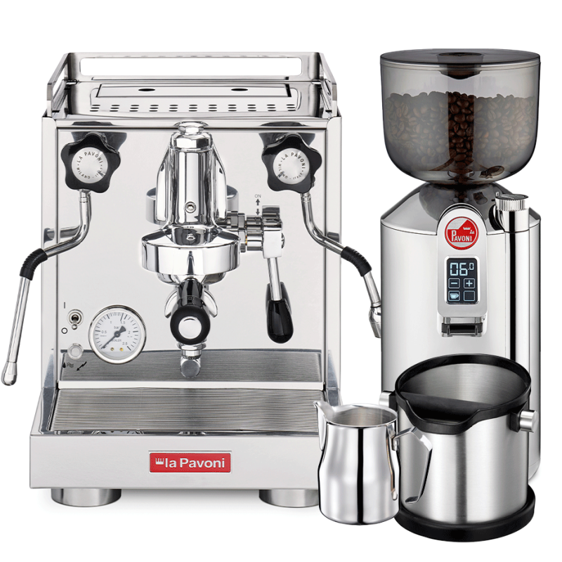I detta paket kompletteras La Pavoni New Cellini Classic-espressomaskinen med den effektiva La Pavoni New Kube elektriska espressokvarnen i färgen krom. Tillsammans utgör de ett utsökt par för den kvalitetsmedvetna kaffeälskaren.