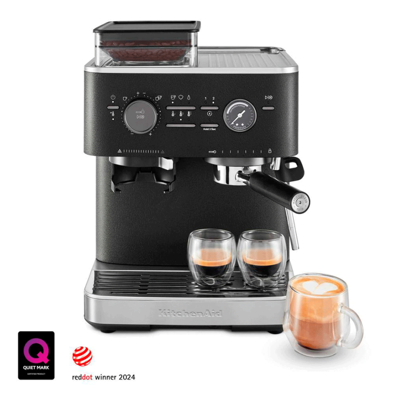Med sin kompakta, metallklädda konstruktion passar KitchenAids semiautomatiska espressomaskin perfekt i vilket kök som helst. Maskinen är dessutom Quiet Mark-certifierad, vilket betyder att den är en av de tystaste i sin klass.
