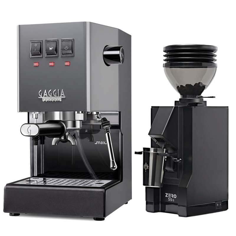 Tillbehör passar Gaggia Classic E24 Grå Espressomaskin Inkl. Eureka Mignon Zero 55s Matt Svart Espressokvarn