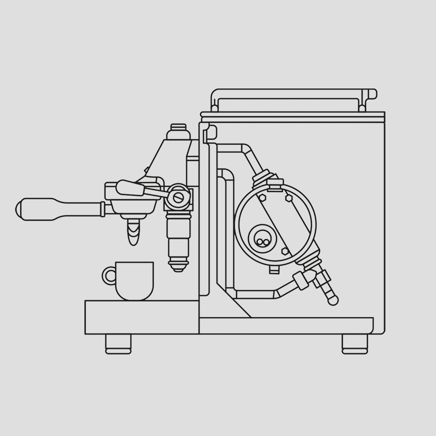 Inuti boilern finns hett vatten och ånga, genom vilken värmeväxlaren transporterar färskt vatten från vattentanken via ett kopparrör. Vattnet i kopparröret värms upp av vattnet i boilern och förs sedan ut genom grupphuvudet för bryggning av espresso. Vattnet i kopparröret används således för bryggning, medan vattnet i boilern används för både uppvärmning och ångfunktionen.