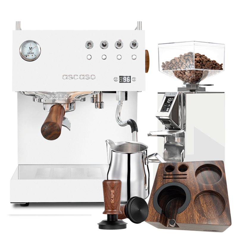 Tillbehör passar Ascaso Steel Duo PID White Espressomaskin Inkl. Eureka Mignon Libra 55 Krom/Vit Espressokvarn & Baristautrustning