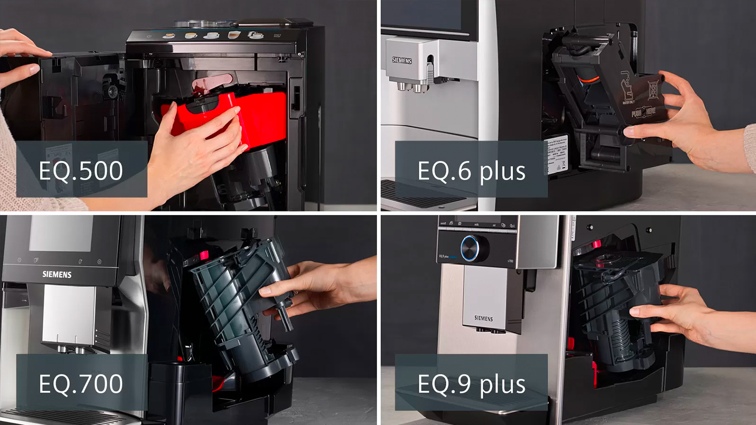 Siemens EQ6 har automatisk rengöring där maskinen sköljer systemet när du startar och stänger av maskinen.