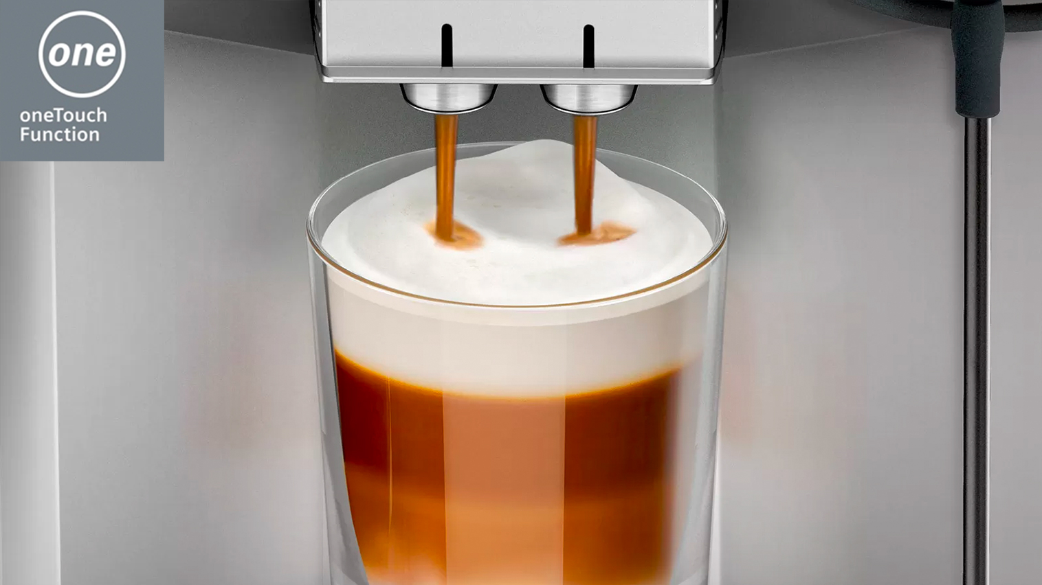Med denna EQ6 espressomaskin från Siemens är det möjligt att tillreda två koppar kaffe (utan mjölk) samtidigt.