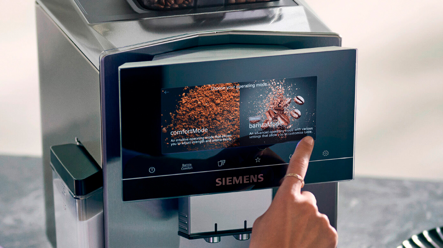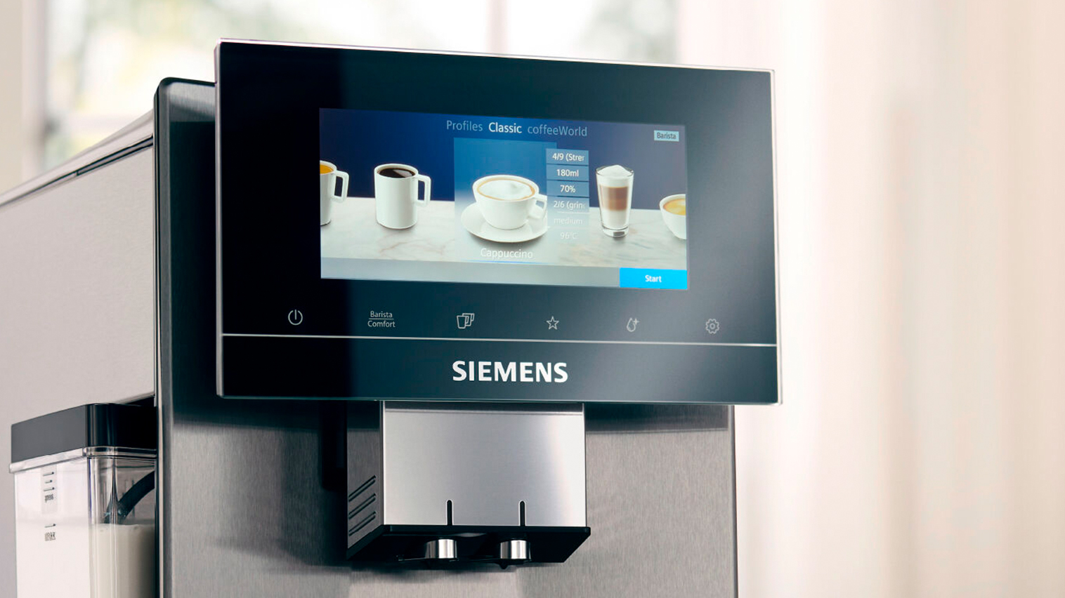 Siemens‑maskinen imponerar inte bara med sin innovation och perfekta resultat, utan också med perfekt funktionalitet i harmoni med estetisk design. Tack vare den dynamiska formen och sömlösa 360°‑designen kan du placera den var som helst.