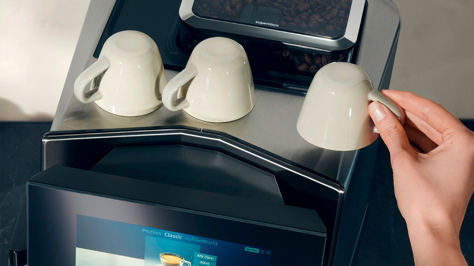 Förvärmda koppar förbättrar din kaffeupplevelse. Tack vare den aktiva koppvärmaren håller kaffet sig varmt längre, vilket låter dig njuta av aromen längre – särskilt för espresso.