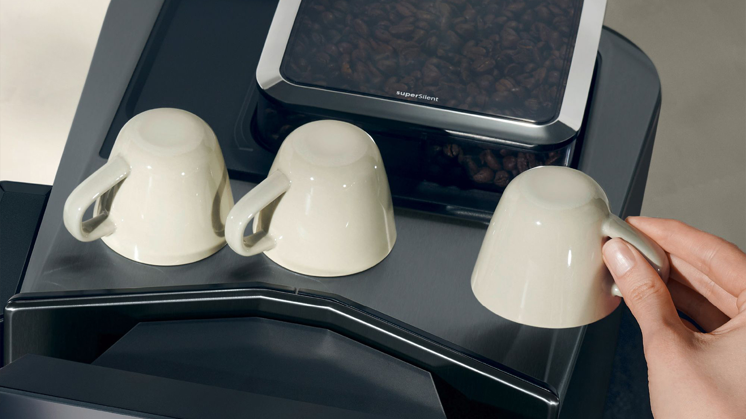 Förvärmda koppar bidrar till njutningen av din kaffeupplevelse. Tack vare den aktiva koppvärmaren håller kaffet sig varmt längre, så att du kan njuta av full arom längre. Särskilt espresso utvecklar sin perfekta smak i en förvärmd kopp.