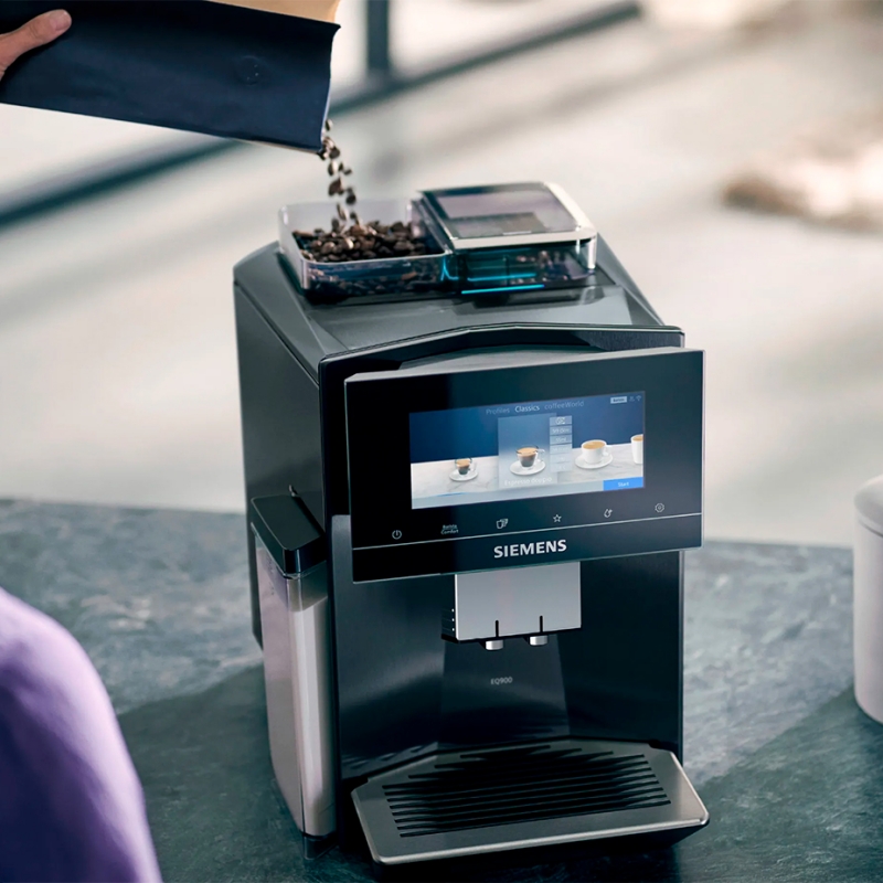 Siemens EQ900 s700 har DualBean‑systemet, som består av två individuella bönbehållare. Detta gör det enkelt att tillaga två separata kaffekreationer med olika bönor. De två separata behållarna har var sin elektroniska kvarn som säkerställer att din kaffedryck alltid blir precis som du vill ha den.