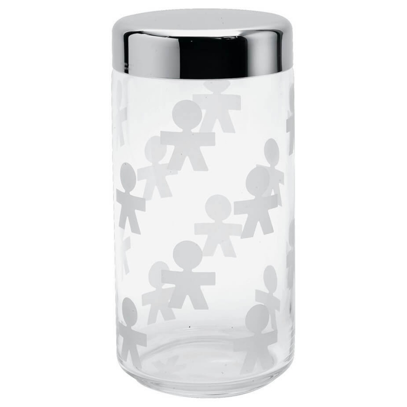 Alessi Girotondo Glasburk är en elegant och modern glasburk med tätslutande lock.