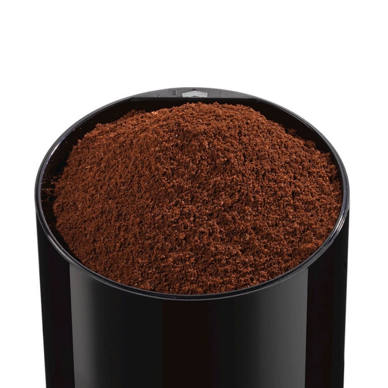 Bosch TSM6A013B-kaffekvarnen har en kapacitet på 75 gram. Den har en effekt på 180 watt och startar när locket är på.