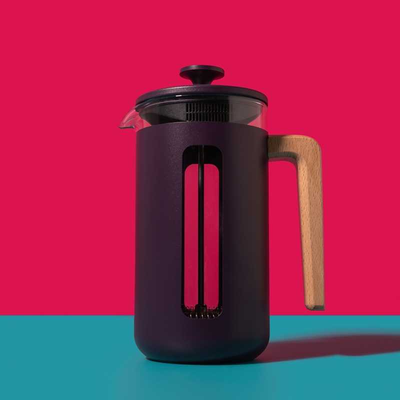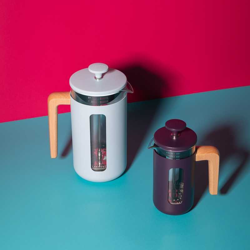 Presskannan är tillverkad av borosilikatglas och rostfritt stål, vilket gör den mycket hållbar. Dessutom håller sig handtaget svalt, vilket gör den enkel att använda.