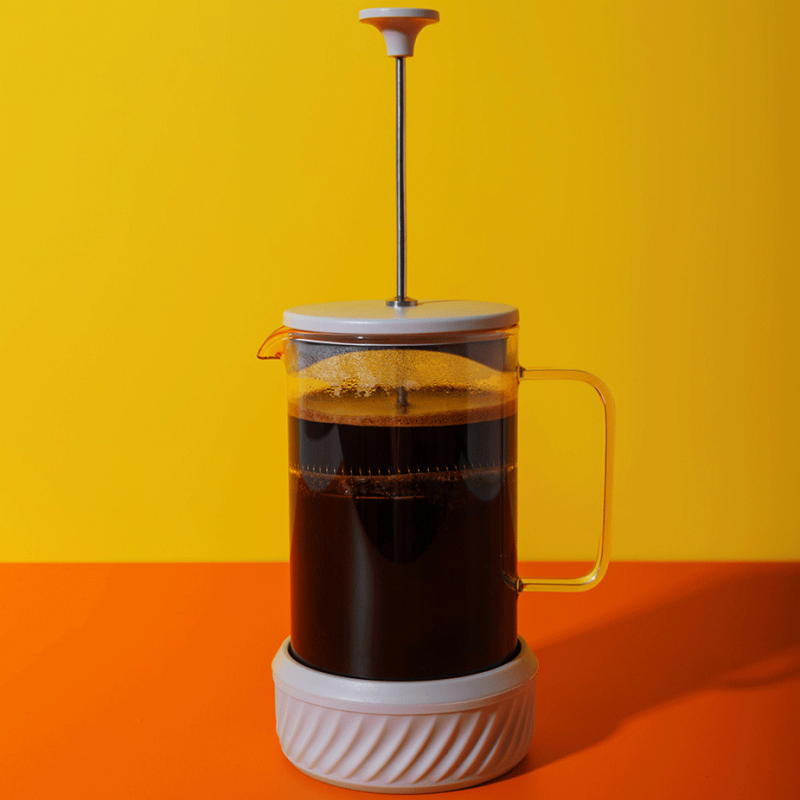 Kaffepressen är tillverkad i borosilikatglas och rostfritt stål, vilket gör den mycket hållbar. Dessutom är pressen utrustad med en silikonbotten där kaffesumpen samlas. Den kan enkelt tas bort och sköljas för snabb och effektiv rengöring.