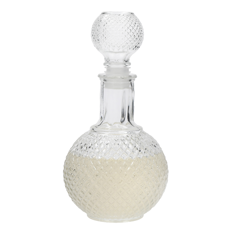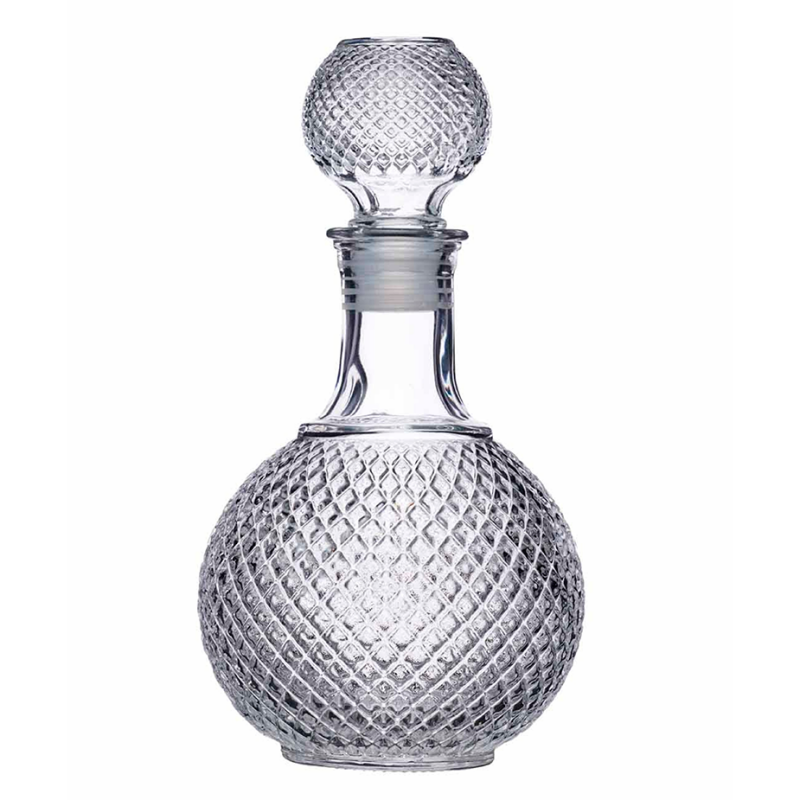 Denna rundade karaffel är tillverkad av kristallklart glas med traditionella utsmyckade detaljer, vilket ger den en vacker design som är värdig en plats i vilken hemmabarskåp som helst.