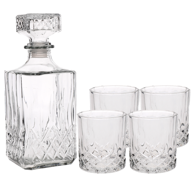 Karaffelsetet är tillverkat i högkvalitativt glas med traditionella skurna glasdetaljer, vilket ger dem en vacker look som definitivt kommer att lägga till stil i ett hemmabarer eller barskåp.