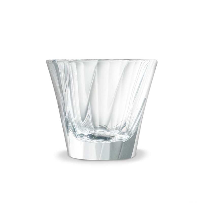 Twisted glas har en intressant vridd yta som bryter ljuset på ett annorlunda sätt med en rundad insida. Den kontinuerliga kurvan låter crema utvecklas fullt ut och ger en fantastisk munnänsla.