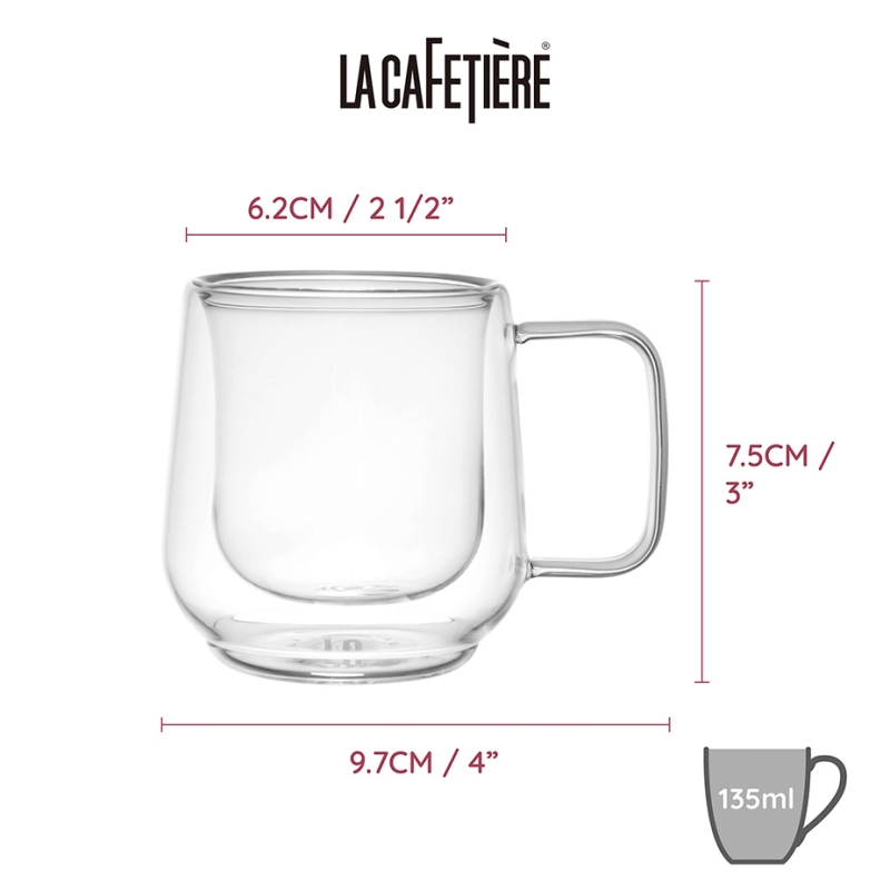 La Cafetière dubbelväggade glas är stilrena och eleganta glas som kan användas för servering av en läcker espresso.