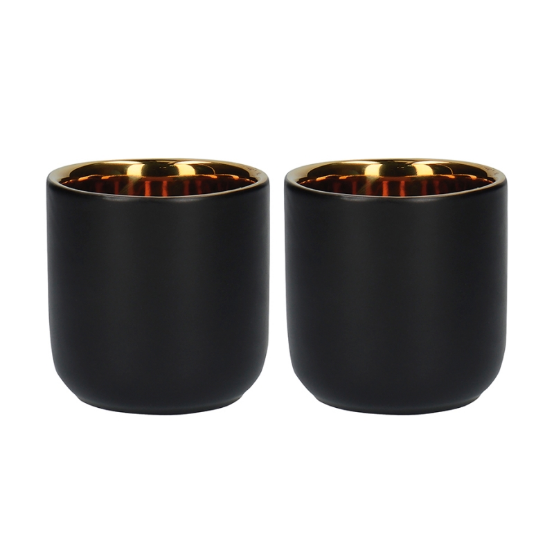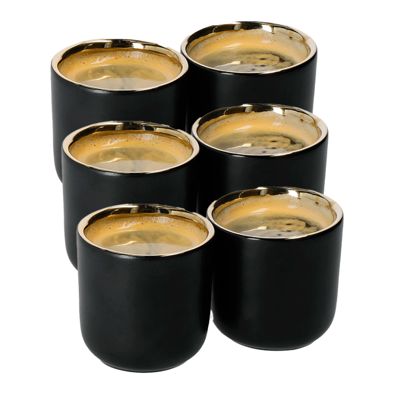 Espressokopparna är tillverkade i stengods och har en vacker färgkombination av svart och guld.