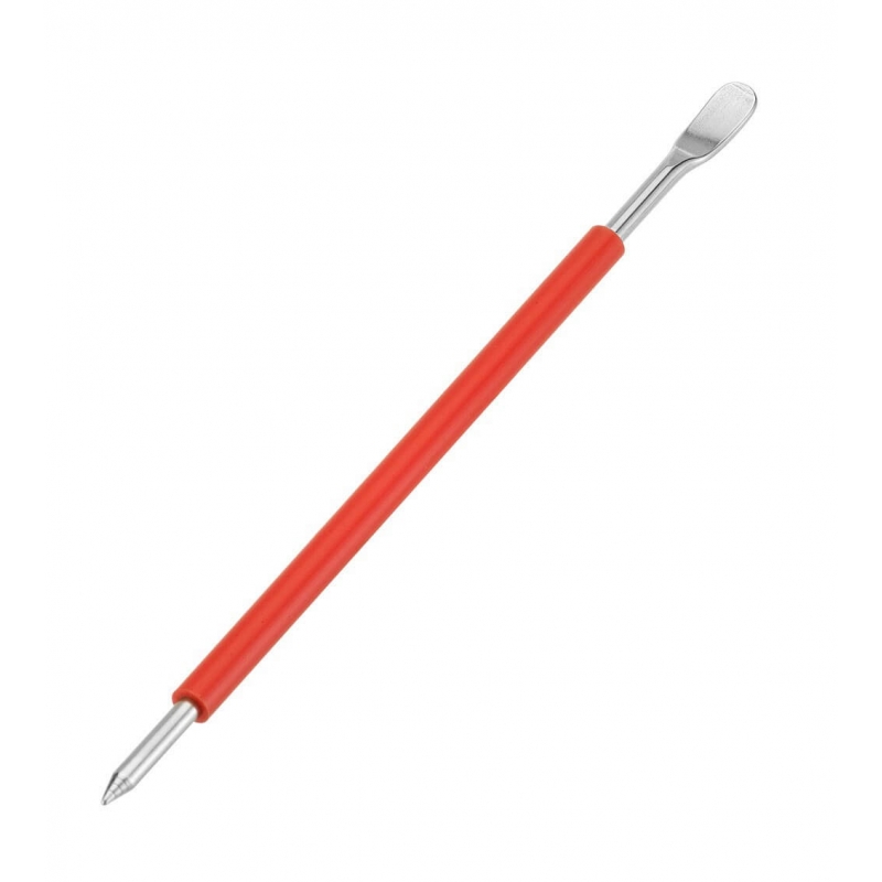 Den praktiska Latte Art-pennan från Motta har två olika ändar: den ena änden är spetsig och perfekt till svårare mönster och den andra änden är flat och lämpar sig därför väl till större mönster samt till att skopa bort eventuell överflödig mjölk.
