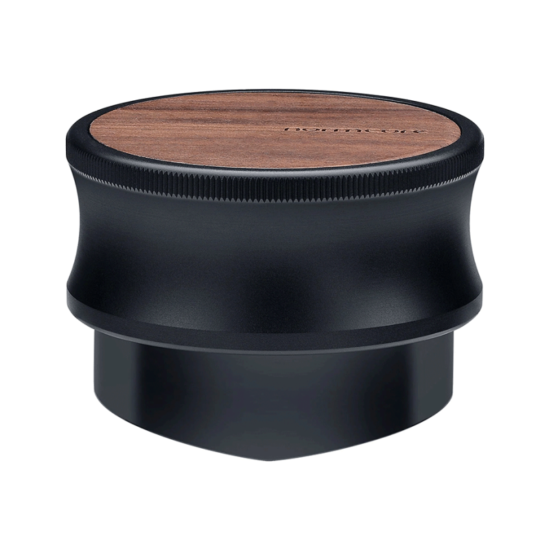 Denna kaffefördelare från Normcore är svart med en vacker yta i valnötsträ och passar till ett 58 mm portafilter.