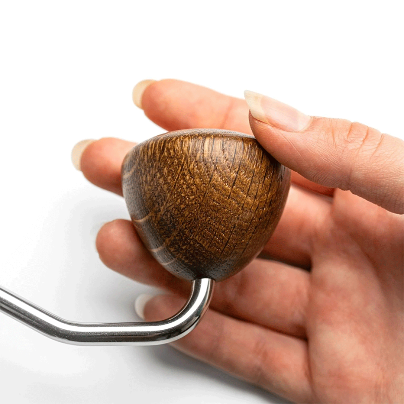 Oak Royal-versionen utmärker sig med sitt vackra yttre i ek, noggrant handplockat för sin särskilt framträdande och sällsynta struktur, som ger kvarnen ett varmt och naturligt uttryck. Varje kvarn har sitt eget unika trämönster, varsamt framtaget så att ådringarna bildar ett elegant mönster i kvarnen – vilket gör den till ett stilfullt inslag i ditt kaffehörn, både funktionellt och visuellt.
