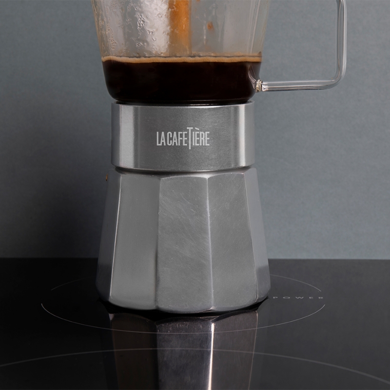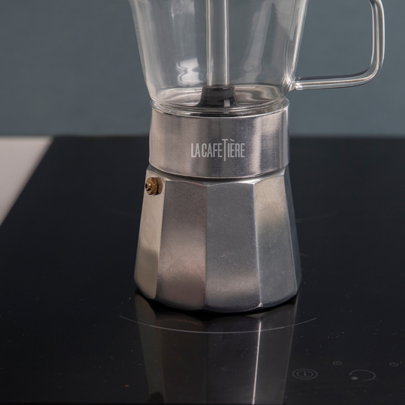 La Cafetière Verona är tillverkad i hållbar aluminium, där handtaget och knoppen förblir svala att vidröra, vilket gör hantering och hällning enkel.