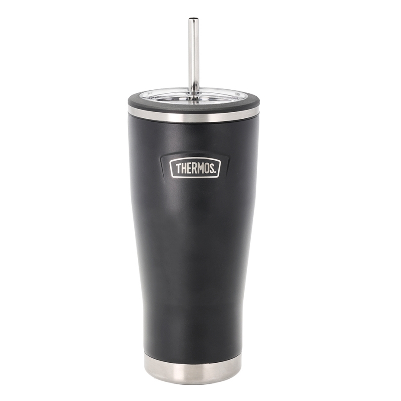 Snygg termosmugg i rostfritt stål med sugrör som gör det enkelt att njuta av dina drycker när du är på språng.