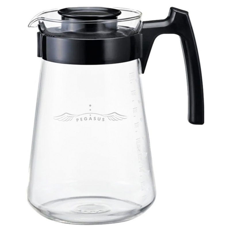 Hario Pegasus 03 Server är tillverkad av värmeresistent glas av högsta kvalitet och utrustad med ett lättanvänt lock och ett elegant handtag i svart plast.