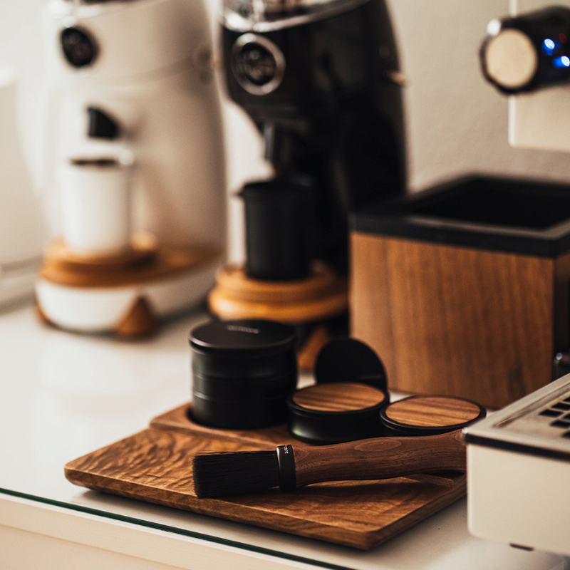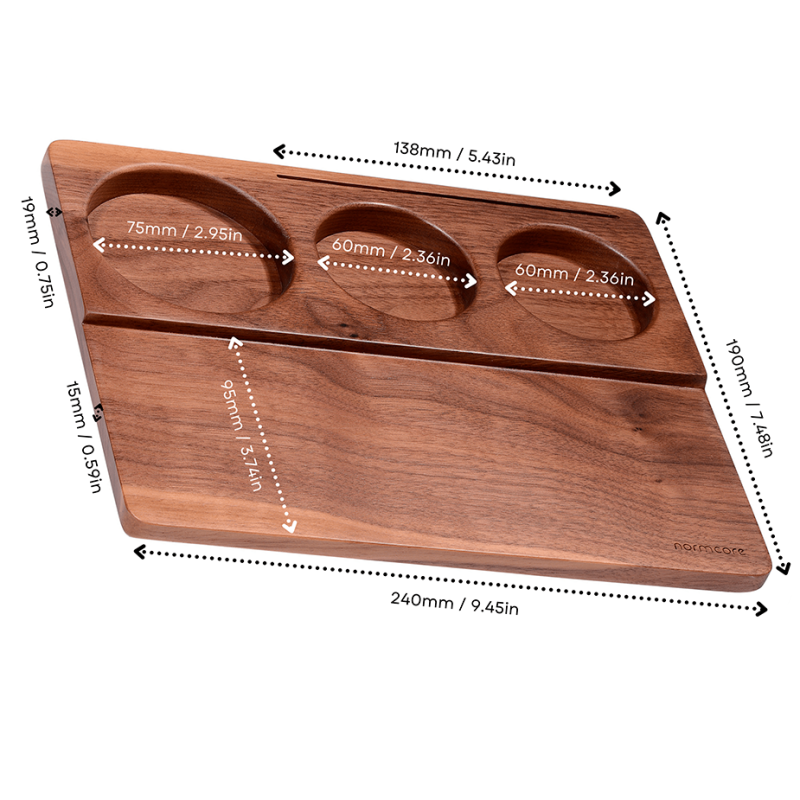 Ge din tampstation ett professionellt intryck med denna matte. Den eleganta tampermåtten är tillverkad av högkvalitativt valnötsträ, vilket inte bara ger ett sofistikerat estetiskt uttryck till din barista-station, utan också ger ett funktionellt och hållbart underlag för tampingprocessen.