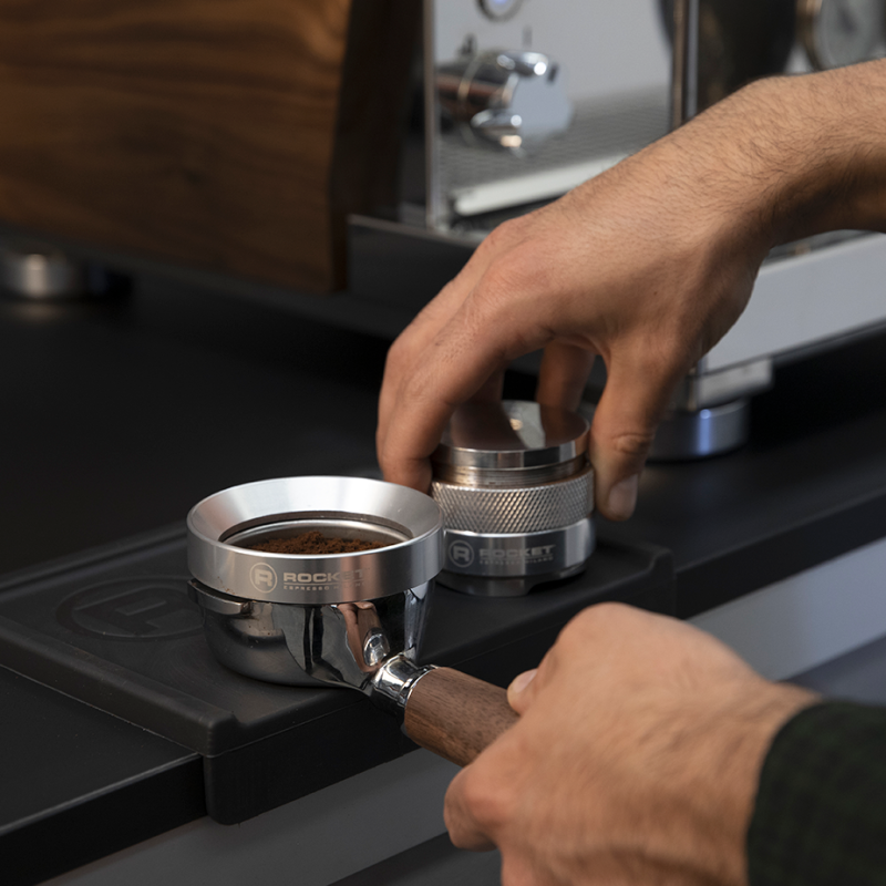 Verktyget är helt justerbart i höjdled beroende på den mängd kaffe som används. Det är tillverkat av högkvalitativt rostfritt stål med en halkfri design och Rocket Espresso-logotypen ingraverad på sidan.