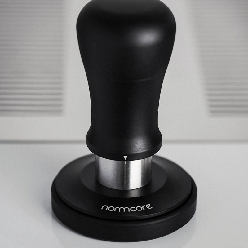 Normcore-tampern är utrustad med ett ergonomiskt handtag som ligger bra i handen. Den har en diameter på 58,5 mm, vilket innebär att den passar 58 mm filterkorgar.