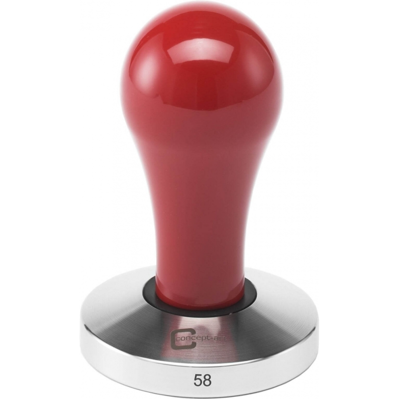 Fin och kraftig tamper från tyska Concept-art, vars bas är av stål vilket gör att den har en bra tyngd, samt handtag framställt i blankpolerad röd plast.