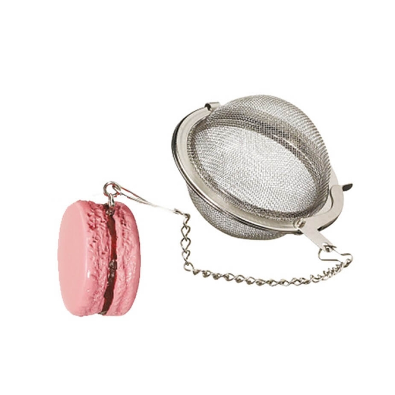 Den kulformade tesilen sitter i en kedja och har en fin macaron-figur i änden.