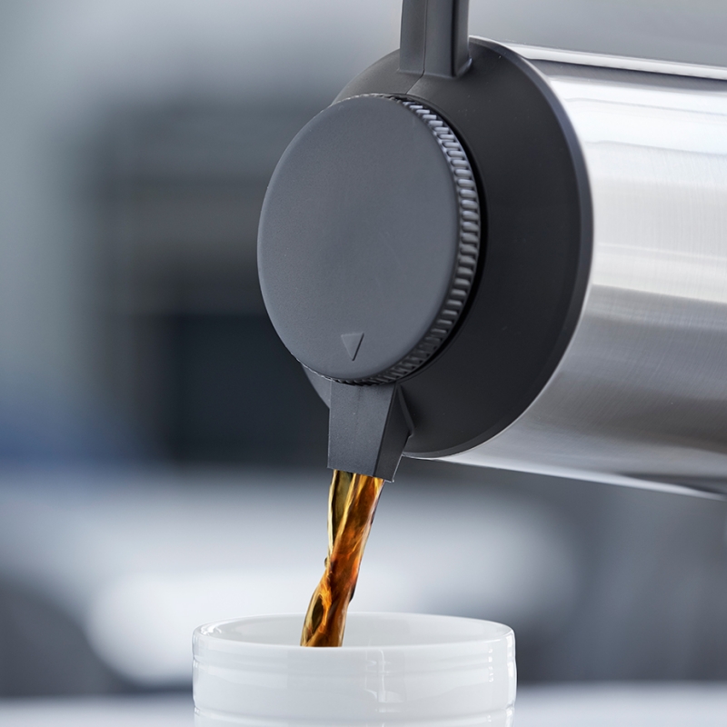 Termokannan har en stilren färg och kraftig glasinsats.